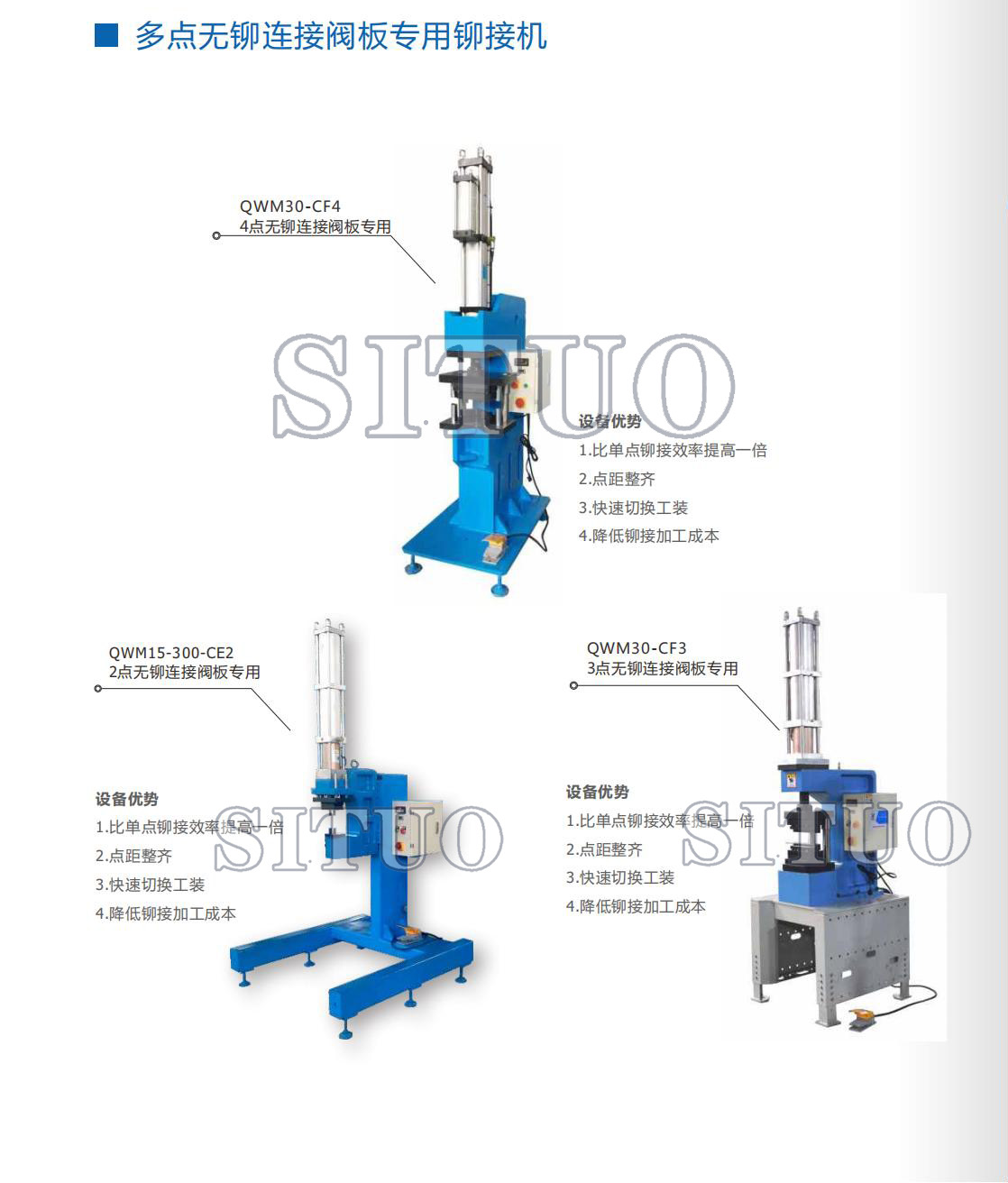 無錫思拓風(fēng)閥閥板系列鉚接機(jī),還有這么多,2點(diǎn),3點(diǎn),4點(diǎn)風(fēng)閥閥板鉚接機(jī),專業(yè)的就是不一樣。